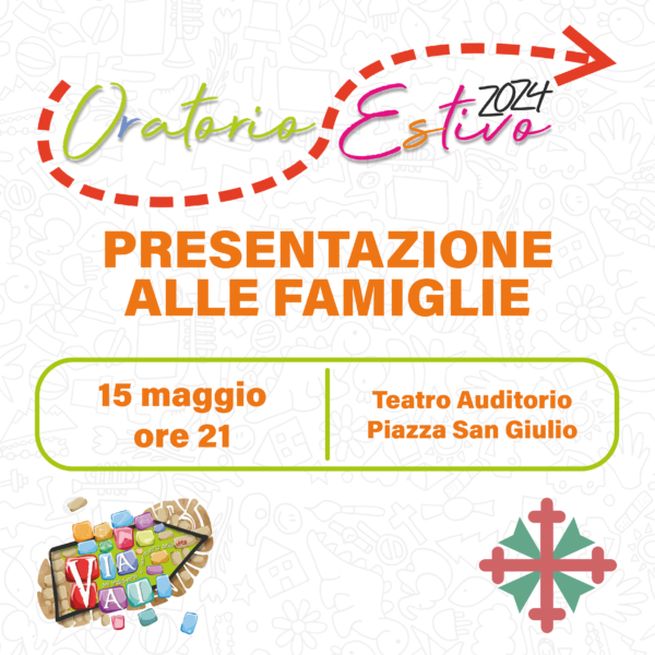 Tutti i genitori e tutti coloro che sono interessati ad iscrivere i propri figli all’Oratorio Estivo 2024 sono invitati alla presentazione!